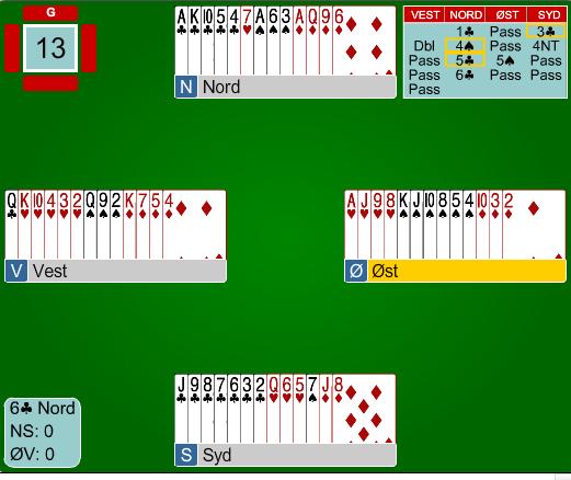 Bergen Akademiske Bridgeklubb (BAK). De møtte Kristiansand Bridgeklubb forrige helg i 5. runde i NM-lag. Sven Olai var kommet i 6 hjerter på hjerterbeholdningen vi ga i oppgave og han løste problemet 100 % etter læreboken. Hjerter konge fra hånden (kan også spille liten fra bordet mot kongen), så inn på bordet og liten hjerter mot J3. Følger begge motstandere på hjerter konge så finnes det ingen muligheter lenger for å nekte Sven Olai 4 hjerterstikk. Pent.