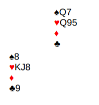 Men fra stakt av kunne spillet gått slik. I 2. stikk trumf til bordet, stjele en ruter, spille nok en trumf til bordet og spille kløver til dukk. Syd vinner og spiller nok en ruter til røff og Øst stjeler en kløver Men nå er en Reverse Dummy gjennomført og når resten av trumfene i bordet tas oppstår en spesiell situasjon.