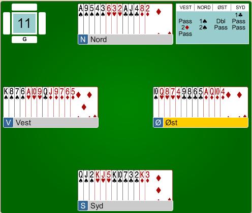 Nå vet vi det. I dag spiller han 48th Asia Pacific Bridge Federation championship for Malaysia mot New Zealand og på spillet under kom de i 3NT etter at makkeren åpnet i en kløver som ble alertert og Dick svarte 1 hjerter som sikkert viste 4 spar, hvorpå han løftet makkers 2 hjerter til 3 kløver og makkeren avsluttet med 3NT.