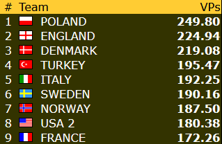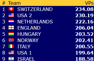 Da vi rapporterte om avansement for det norske paret fra Round of 32 til Round of 16 ble det her i bloggen skrevet at ROSENTHAL ledet komfortabelt mot GOODMAN, men at ROSENTHAL tapte IMP mot slutten og vant bare såvidt. Det var helt feil, det var faktisk motsatt. Før det siste sett i den kampen lå de norske under med 28 IMP, men greide med en sterk sluttspurt å snu til seier med 8 IMP.