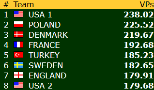 I kvartfinalen møter laget med de to norske spillerne et sterkt firemannslag uten spillende sponsor (Team Hill) med bl.a de to svenske brødrene Mikael og Ola Rimstedt.