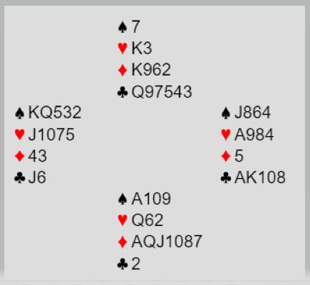 Alt dette er lett å si med fasit i hånd. Vi blir farget av at vi vet alle kortene. Men Ø/V som er solide og gode spillere er antagelig enige i at det ble litt passivt? Ved bordet var de imidlertid sikkert ikke så misforhøyde med noe som i alle fall i teorien er et godt resultat, N/S hadde tross alt misset en utgang som står og selv har de (i teorien) kun ni stikk i sparkontrakt.