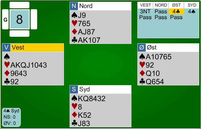 I C-Pulja så er det flere av våre lag som sliter med ustabilitet. Best nå er Kolbotn BK7(Einar, Gerd, Karl Johan og Jørgen), likevel de tapte 14-16 mot BK Tempo. Sett på spillene her, og dette var totalt unødvendig. I bridge så er det ikke som i den vanlige verden, at når man får en present, så behøver man ikke å gi en tilbake.