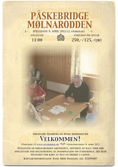 Velkommen til påskebridge på Mølnarodden 9. april. I år som tidligere arrangerer Ramberg og Reine BK kretsturnering 2. påskedag. Påmelding skjer via hjemmesiden til Lofoten og Vesterålen bridgekrets.