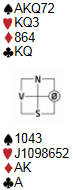 - Både TL og NS ser på kortene når de avgjør resultatet av spillet. Det dømmes til en kontrakt som aldri er meldt og som står fordi sitsen er gunstig. For det første ville ØV meldt annerledes hvis Nord fikk endret sin melding til noe annet enn 2hj. Hvis sparkutten IKKE hadde gått, ville NS IKKE protestert og TL ville IKKE justert resultatet på spillet. Den ene siden får melde ideellt utfra kortenes plassering, mens den andre siden må passe.