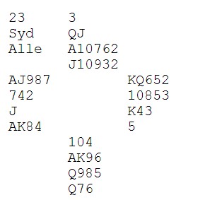 Mange sydspillere klarte ikke å stikke over makkers hjerter knekt andre gangen fargen ble spilt. Da forsvant det en hjerter hos vest på ruterkongen og 4sp føyk hjem. Gi vest en annen fordeling i rødt, f.eks 2-3 og ikke kløverkongen, så er det et stålegg å stikke makkers knekt. Da godspilles tieren til avkast av en ruter.