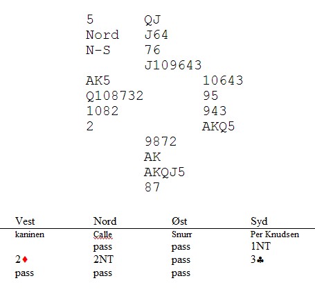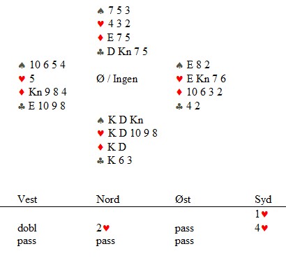 Team Bente Skymoen tapte knapt mot Drøbak. Bente og Tom hadde en fin liste, men litt harde meldinger fra det andre paret medførte et knapt tap. Her var de en håpløs 7 ruter, og en enda mer håpløs 6 NT. Dette er dyrt.