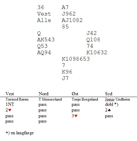 Vel, uansett så kan vi juble for at vi har med 2 Jessheim lag med til 3 runde kampen, trekningen her har ikke blitt gjort enda, men det regner vi med at forbundet gjør i løpet av morgendagen, slik at jeg kan oppdatere hjemmesiden med motstandere i 3 runde, samt sammenligne lagene som da blir satt opp mot hverandre. Det siste Jessheimlaget som var med i 1 og 2 runde, gikk desverre på et stort tap i første kampen, da var egentlig løpet kjørt i forhold til kvalifisering inn blant de 36 beste toerne som gikk videre. Det var dog ikke helt håpløst da vi ser at det er "toere" som går videre med 20 VP, så da var det i teorien egentlig mulig å komme inn blant disse med en 20-0 seier i siste kampen. Det gikk desverre ikke slik, ryktene tilsier at man vant kampen med 30 IMP, noe som gir en 15,24 seier. Altså utenfor de som går videre.