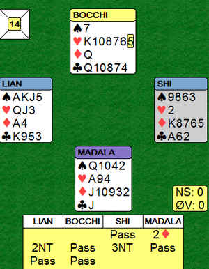 Skal prøve å finne spill noe senere, men kan si det slik; Vi reddet kvelden til Ivar og Eivind på siste bord. Selv om de fikk litt over 40% totalt, så knuste de oss.(vi hjalp godt til) Da ble de så glade at totalscoren spilte ingen rolle lenger
