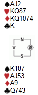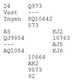 Så skal jeg publisere en mail fra Baard Olav Aasen. BOA er svært kritisk til min skepsis og mener jeg er konservativ og reaksjonær. Det har han både rett og feil i, men når jeg ser fasiten han kommer med blir jeg enda mer sikker i min sak. Bridge er vanskelig nok i seg selv om en ikke skal legge dype feller for seg selv og makker. Nesten så jeg mener at en legger opp til å skyte seg selv i foten. BOA kommer til å gå fra konseptet når han ser hva jeg mener, men jeg stikker fingeren i jorda og sier at vi er ikke bedre enn det vi presterer ved bordet. Uansett hvor lange og flotte systemkompendier vi har.