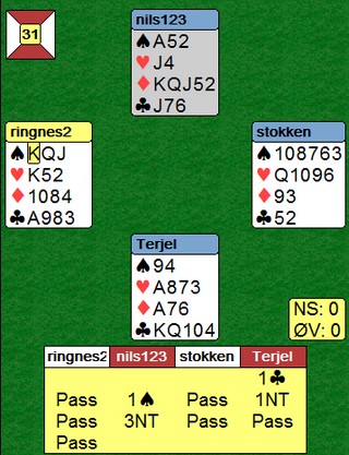 At noen som spiller aktiv bridge ikke gidder å lære seg et skikkelig system er jo deres egen feil. Spiller du på det nivået dere spiller på, så må man kunne forvente mer på systemkortet enn Midsem. Svaret på å utvikle seg som bridgespiller er neppe å takke nei til utvikling i meldesystemer. Åpning 2nt som viser 20-21 er jo en svakhet i et system. Jeg syns løsningen til boa er bra.