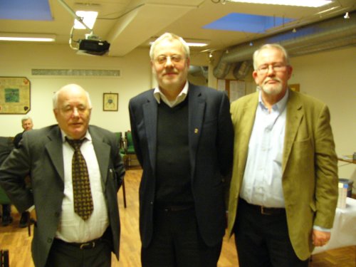 Hans Jørgen Bakke flankert av kretsleder Tor Henriksen og styremedlem Arve Christiansen.