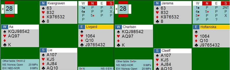 Da må det mot til fra de som leder oss. Styret i NBF må tørre å tenke stort og nytt. Prosjekt "Bridge-EM 2014" må bli et fellesløft som engasjerer bredt og ikke bli noe der en indre krets i prosjektgruppa holder bukta og begge endene. Om det styret skal ledes av Jan Aasen eller Jostein Sørvall vet vi i morgen, så jeg venter i spenning. Personlig har jeg en sterk mistanke om hva som er best for oss, men det er opp til dere tingrepresentanter å bestemme.