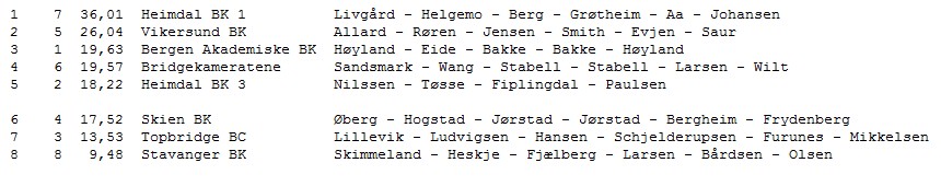 Norge vant den spennende kampen over 42 spill med 2 imp, før de utklasset Tyskland i finalen.