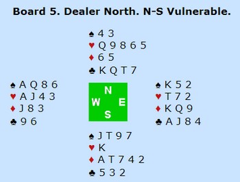 Bjerregård åpnet med 1 kløver og nå gjorde Helge det svært vanskelig for svenskene ved å melde to ruter. Morath i Øst doblet opplysende og Bjerregård meldte sin laveste majorfarge. To hjerter ble passet ut og to sonebet til de kjekke sørlendingene.