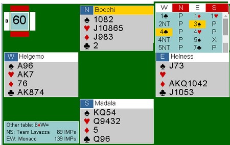 mens i spillet under fikk Boye kjeft av Ramakommentatorene for å passe 3NT med sine fem kontroller. Kanskje skulle Espen meldt ruteren sin en gang til? 6ru i øst en en veldig fin kontrakt. Det kommer helt sikkert spar ut og da spiller 12 stikk seg selv.