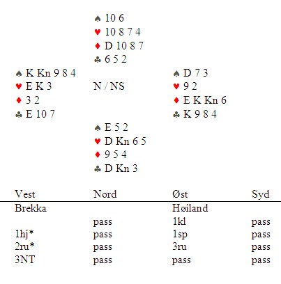 "Vi har det også bra. Nå venter vi på par, men er ikke helt sikker på reglene. Det er sikkert oversiktlig nok, men vi har bare ikke satt oss helt inn i det. Det viktigste er å ta mange stikk i gode kontrakter. Da går det helt sikkert bra. Flott også at NM Veteran gikk over tre fulle sesjoner. Vi likte ikke helt at NM Veteran og Åpent NM lag gikk samtidig, men vi skjønner at noe må kollidere.