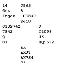 Ja, det er noen som har sagt at det svenske mesterskapet er så mye bedre arrangementteknisk, men det kan jeg ikke helt forstå. I år var den største tabben at vi glemte å skru av en BridgeMate-server som ikke var i bruk. Da ble det litt kluss, men ikke verre enn at vi kjapt retta opp. Ellers kan jeg ikke se at noen har vesentlige ting å klage på. Turneringene starter til avtalt tid og slutter når de skal. At folk vaser og virrer i ganger og toaletter når du skulle sittet ved bordet, kan da ikke vi alltid henges for?