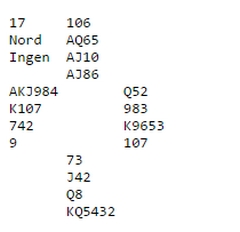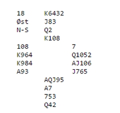 Det andre meldingsforløpet viser Marianne Homme i aksjon i vest. Selvsagt kan det stå 3NT, det er bare å gi nord Dxx i spar. Nå ble det middels i stedet for en bunn. Tøft, fru Homme!!