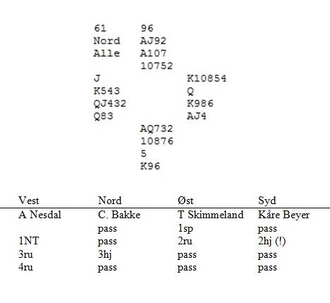 Jeg var rimelig sikker på at Møre & Romsdal ville gjøre det bra. Mange søndager har jeg bakspilt Kvangraven - Lie - Kindsbekken - Voll, og der har vært flott bridge. Lie leder med 10 VP etter store seire i de siste kampene. Heller ingen bombe at Hauge og Charlsen er på de to neste plassene. I bånn troner to ganger Vest.-Agder og Østerdal. Mer info, resultater og annet stoff finner på på NILS SIN SIDE.