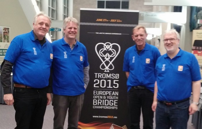 Øst passer (!) 4NT og går tre beiter med ruter ut. Det er "bare" å dukke ruteren to ganger og så ta hjerterkappen, men en like god spilleføringi 4NT er kanskje EK i hjerter og så sparkappen. Dette fordi at en kan ikke se at ruteren sitter 5-3. Slik spilte tyskeren og gikk to beit.