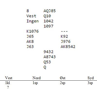 Ingen var i sonen, og Odd Frydenberg som Vest og Geir Egil Bergheim som Øst meldte som følger: