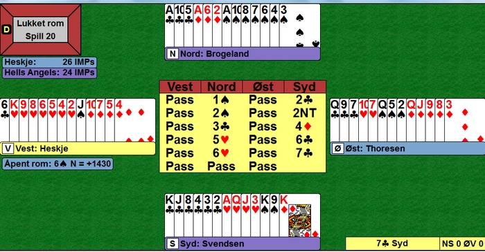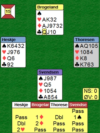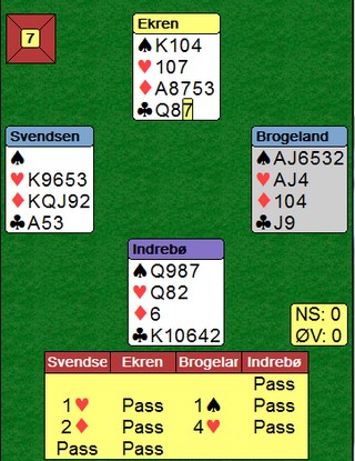 Spillefører gikk beit, mest fordi hun stakk første hjerteren i bordet og fikk da et inntak for lite til både å godspille kløveren og hente den. |