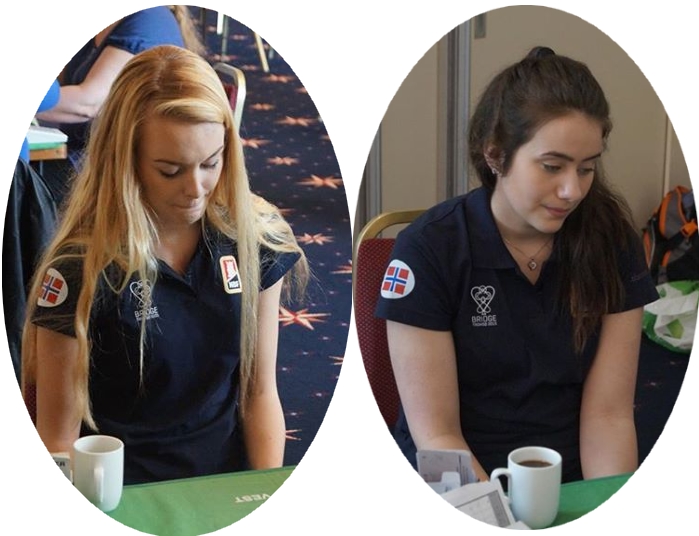 Siv Thoresen er ikke mørkredd og finner en fin stamp. 4hj står lett i elleve stikk, men selv om Tonje og Tone fant ruterstjelinga ga det bare +500. 4 IMP mot 650 på det andre bordet. Der passet Kristine Breivik og øst åpnet med 2sp. Nå ble det vanskelig å stampe.