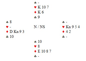 Jeg ville meldt sparen min i øst i første melderunde. Det er ikke sikkert Terje og Nils hadde klart å stoppe under utgang likevel, men nå ble det i alle fall umulig siden 3sp må være krav. 4hj er slettes ingen håpløs utgang med hjerteren 3-2 og en kløverhonnør i syd og ellers ikke alt for skeivt fordelt. Etter nords opplysende dobling er delkontrakt absolutt å foretrekke.