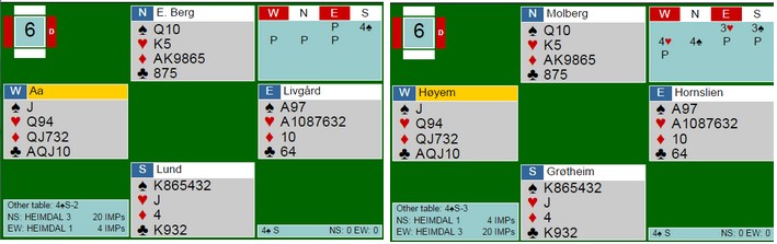 Her var ikke Glenn Grøtheim heldig med "stampen" sin i 4sp. Den kosta 500, mens 3NT i praksis går beit. Ingen vil vel ta ruterkappen gjennom nord? Ikke noe som er rett eller galt, men spillere i glid (her Børre Lund) gjør ofte rett i slike situasjoner.