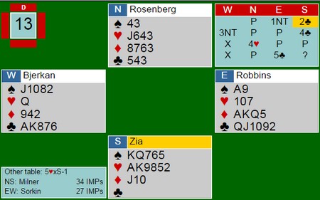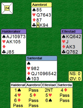 I dette spiller står det 11 stikk i hjerter og 4sp går minst to beit. Da er det billig å betale ut en hundrelapp.