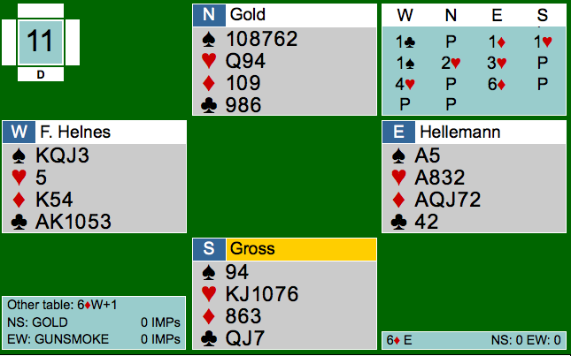 I siste sesjon i dagens EM-finale for par, lå BLUND et godt stykke bak Nederland, så de måtte prøve å skape svingspill. Om de tapte med 15 eller 50 IMP, spilte ingen rolle. I slike situasjoner må en ikke gå bananas, fordi en trenger ikke vinne alle 14 spillene. 36 IMP er tre utgangssvinger. Klarer en å få inn f.eks en 16-17 IMP'er, holder det med en utgangssving og tre dobbelscorer. Verre er det ikke.