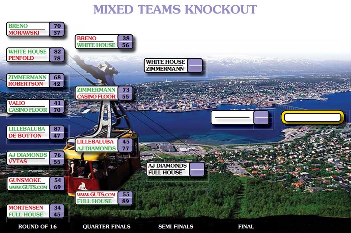 Slike spill svinger 29 IMP (!). Nå vant FULL HOUSE 17 IMP med +1430 og +100, mens med hjemgang hadde GUTS.COM vunnet +780 (2210 - 1430) og 12 IMP.