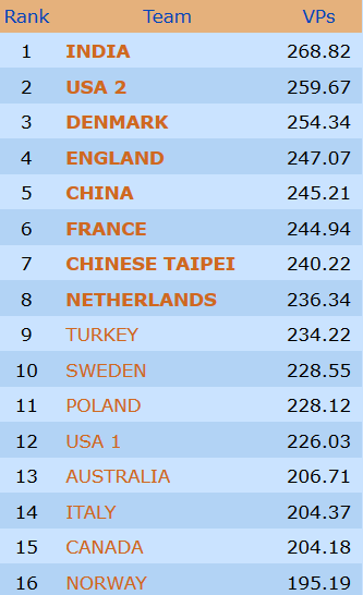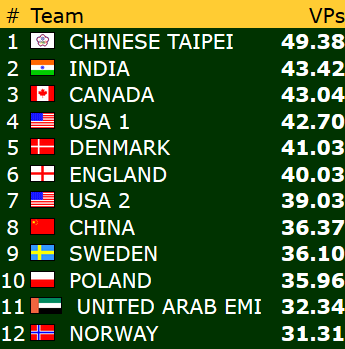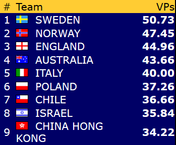 Åpen klasse: Norge - Singapore 17,85 - 2,15 (IMP-score: 62 - 24)
