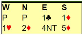 Etter innmelding over 4NT må man ha avtaler om hva de forskjellige meldingene betyr. Motpartens melding tok bort rom, men for å kompensere for det har vi tilgjengelig både pass og dobler.