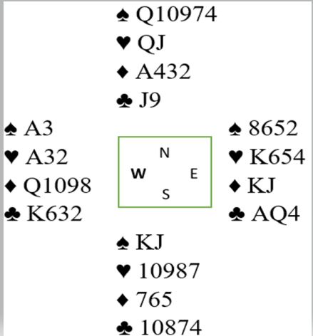 Men se på mellomsparene nå som N/S har brukt to store spar i første stikk, to store kort som du kan stikke. Slik ser hele spillet ut: