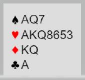 Med åpne kort er det lett å se at her står der 7 NT og 7ru, men er du sikker nok i meldeteknikk for å nå fram til beste kontrakt i par? Hans Petter Stavrum fant en praktisk løsning: Han åpnet med 1 ruter, fikk svar 1 hjerter fra makker Egil Meyer og krevde med hopp til 3 spar, splinter! Meyer satt med 17 hp og var ikke vanskelig å be, etter 4 NT og 5 NT var 6 NT at alternativ til stopp, men HPD satset på at ruterfargen var gående og løftet til 7 NT for 2220. Med 19 hp og en meget spillesterk hånd er kravåpning 2 kl også er bra alternativ i 1. hånd.. Når mSyd nkannkartlegge at samtlige ess og konger samt langfarge i ruter hos makker er på plass MÅ 13 stikk stå og 7 NT bør meldes.