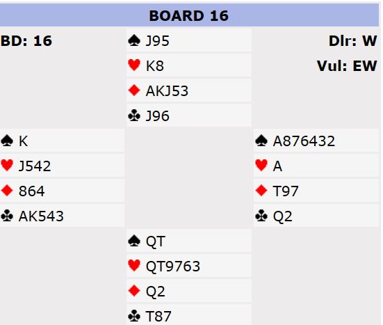 Dette er et hverdagsspill hvor korrekt motspill mot 3 spar gir tre ruterstikk og to trumfstikk til nord siden vest må bruke trumfkongen idet fjerde runde ruter spilles og syd setter i spar 10. Men da lover og regler kom inn i bildet ble stikk overført til spillefører pga. av revoken i stikk 2, og kontrakten ble notert som vunnet. Det kostet selvsagt noen IMP, og slik det var utgjorde det litt over 1VP mens altså marginen opp til 8.plassen var 0,4 VP.
