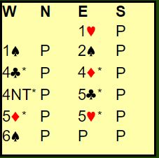 Først der jeg som Vest i 4. hånd kunne melde hardt på relativt svak honørstyrke.