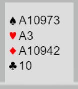 I spill 7 der Kjersti (S) var giver og alle i faresonen. Det ble meldt speselt siden det var veldig ujevn fordeling:Se først på hånden jeg hadde i Nord, hva åpner du med i 3. hånd? 9 sikre stikk alene!