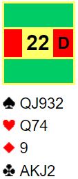 Det er vel nokså klart at syd bør melde, for med såpass bra kort og fin fordeling kan man ikke la motparten spille så lavt, vel? Kortene passer godt til en opplysende dobling. Da kan vi finne en bra delkontrakt, og om ikke annet presse motparten opp ett trinn hvis de melder mer. Dobler ble hva makker meldte, men da sa det PANG. Han som hadde sagt 2 ruter meldte 3NT! Hvorfor sa han 2 ruter først så de faktisk stoppet der hvis han har kort gode nok til 3NT?