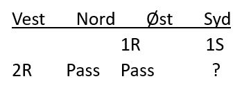 Vest meldte inn 1 hjerter, og jeg (nord) sa pass. Øst meldte nå 2 ruter, såkalt cue raise, god løft i hjerter.