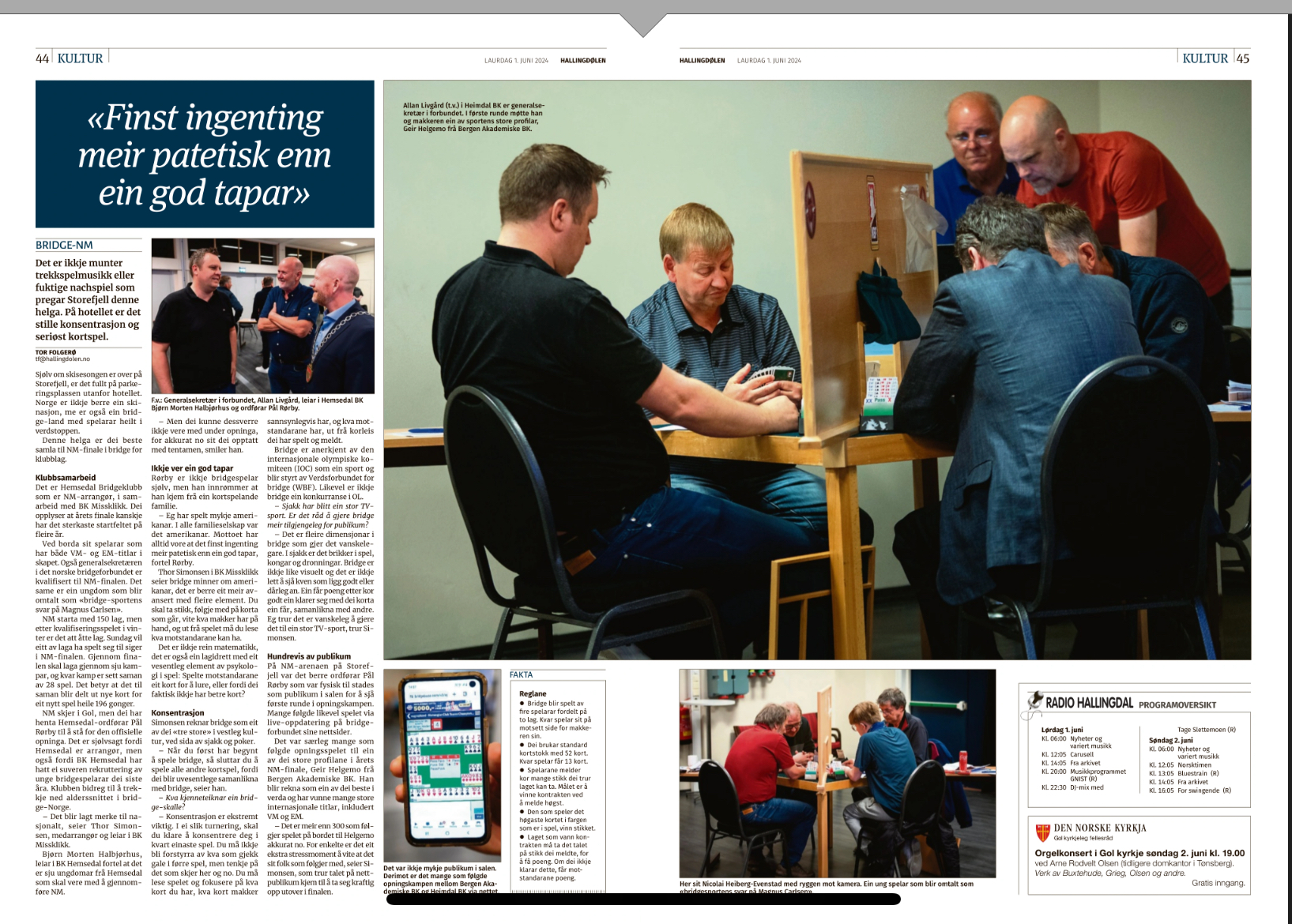 Kun ett par til i feltet meldte og vant 6 hjerter, Jan Arild Olsen - Helge Stornes. Alle de andre Ø/V-parene stoppet i utgang med elleve eller tolv stikk.