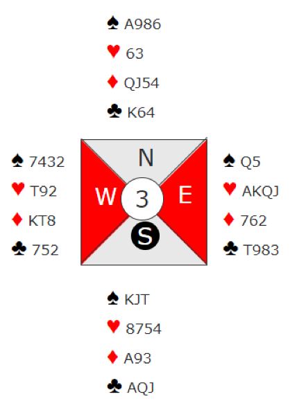 I dette spillet fra runde 2 i U-16 (Norge-Polen) på tirsdag var det Markus Hansen Moe og Ida K. Mathisen som meldte mer optimistisk enn resten av feltet. Og det norske paret lyktes. Først kan du ta stilling til hvordan melde denne hånden: