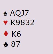 Så kom et lite svingspill i norsk favør. Vurder vest sine kort etter å ha åpnet med 1 hjerter og hørt 1 spar fra makkeren: