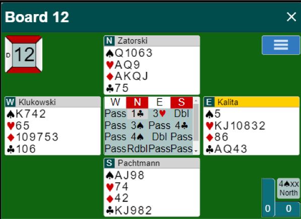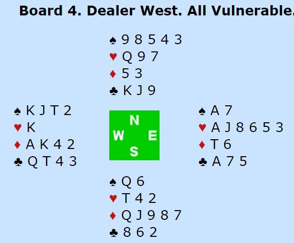 Der Duboin åpnet med 4 spar passet Pachtmann (Street) med østs kort, og det gikk pass rundt.
