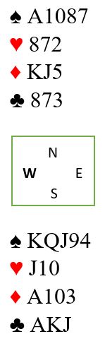 Det er kløver som er innspillsfargen i diagramsituasjonen. Spill de to toppkortene i kløver av en tredje runde av fargen. Vest kommer inn og må spille til dobbeltrenons som gir stjeling på den ene siden og ruteravkast fra den andre, eller vest må spille ruter som løser den fargen for deg.