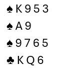 I dette spillet ville Splinter 4 ruter fungert perfekt. Nå hadde riktignok nord en singelton selv, og over syds 2NT kunne han vist den med et hopp. Men det er av og til litt ugunstig å vise singelton med esset singel (4HP). Uansett, slemmen ville vært like bra om nord hadde hatt de samme kortene, men 4-2-4-3 fordeling. Det ble alså stopp i 4 spar med tolv stikk for det paret.
