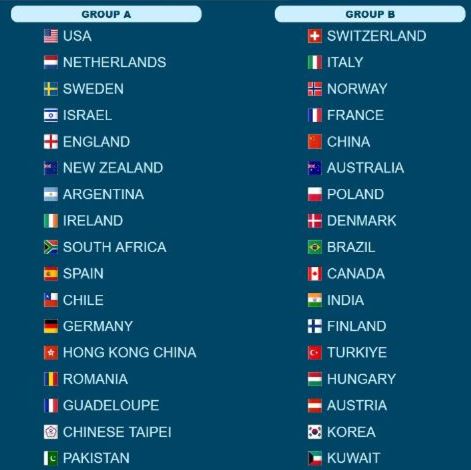 NBF bør ha, og har nok ambisjoner om gode resultater der nede. I OPEN skal 35 lag delta fordelt i to puljer, 17 og 18 lag. Lagene ble seedet og deretter trukket i to puljer. Puljene ser slik ut: