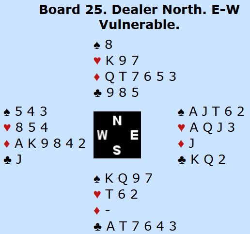 Vests dobling av 3 kløver ble forklart som «verdier, på en måte straffedobling av nords svake 2 ruter og ingenting spesielt å melde». Men det er klart at selv for Ø/V som var et isrealsk topp-par var ikke betydningen av dette meldingsforløpet helt soleklart.